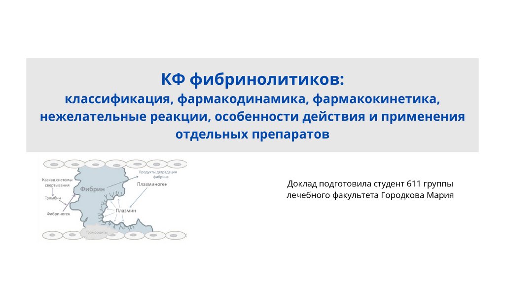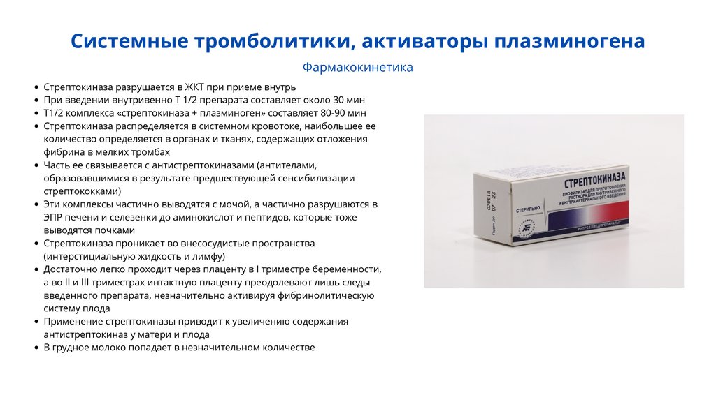 КФ фибринолитиков:классификация, фармакодинамика, фармакокинетика,