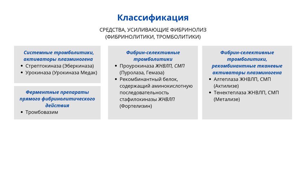 КлассификацияСРЕДСТВА, УСИЛИВАЮЩИЕ ФИБРИНОЛИЗ