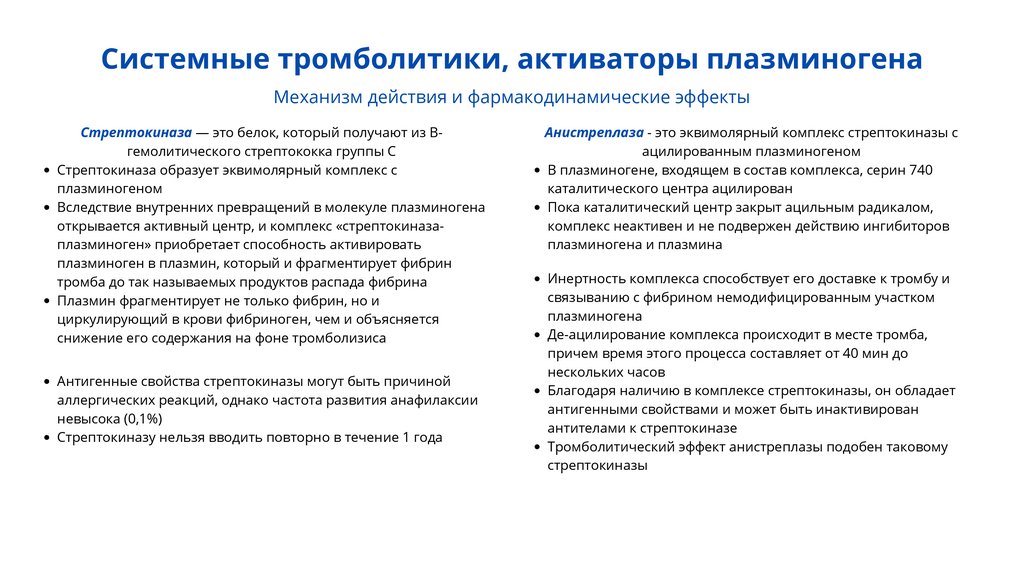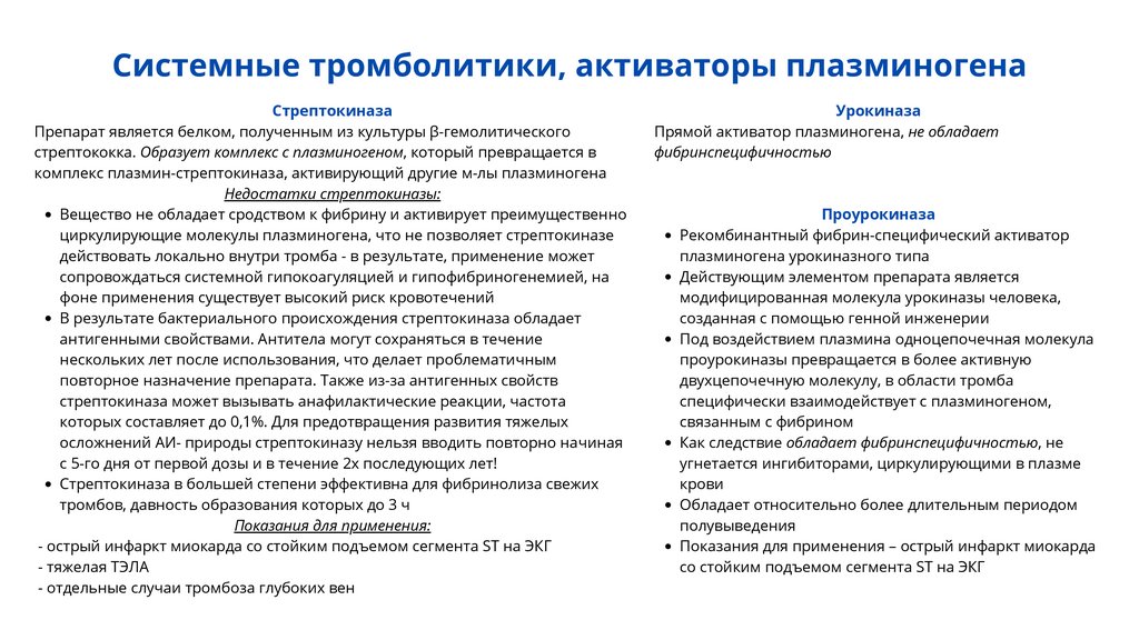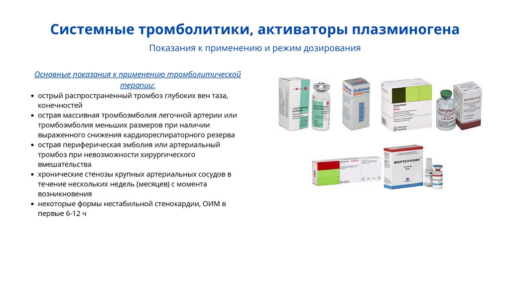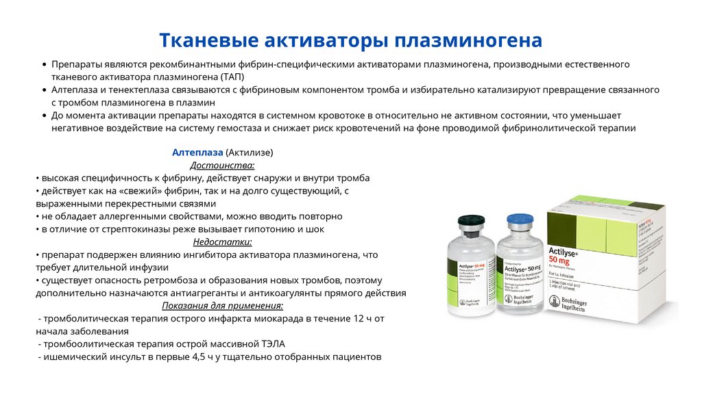 Тканевые активаторы плазминогенаПрепараты являются рекомбинантными фибрин-специфическими активаторами плазминогена, производными естественного