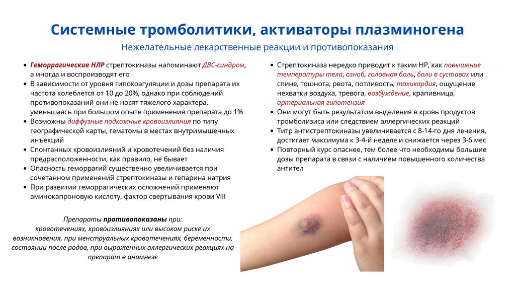 негативное воздействие на систему гемостаза и снижает риск кровотечений на фоне проводимой фибринолитической терапии