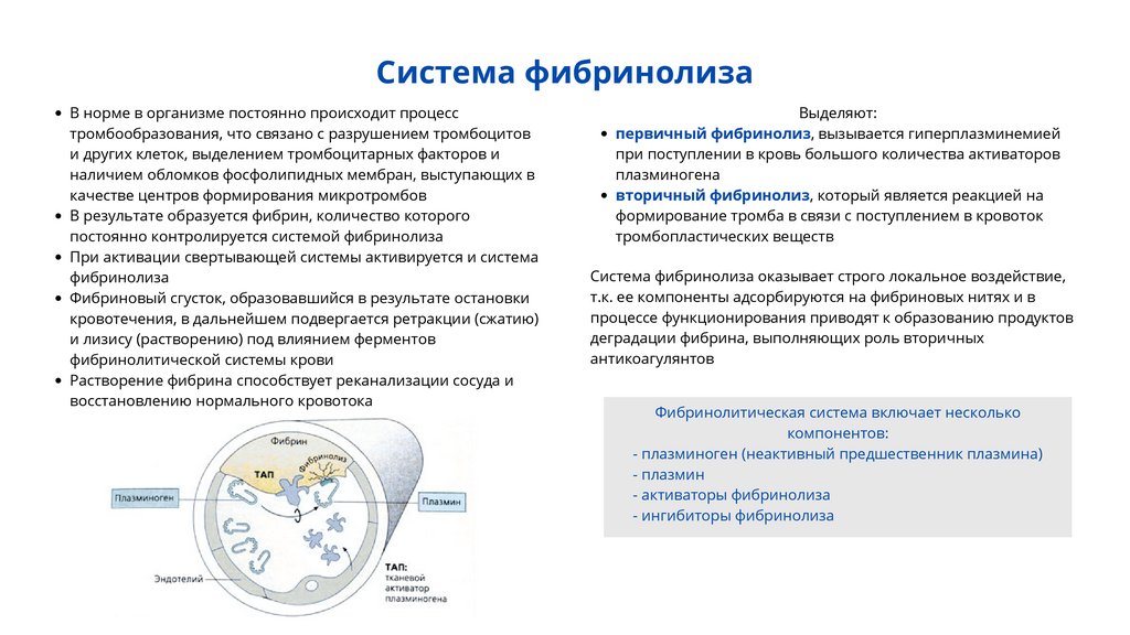 Система фибринолизаВ норме в организме постоянно происходит процесс