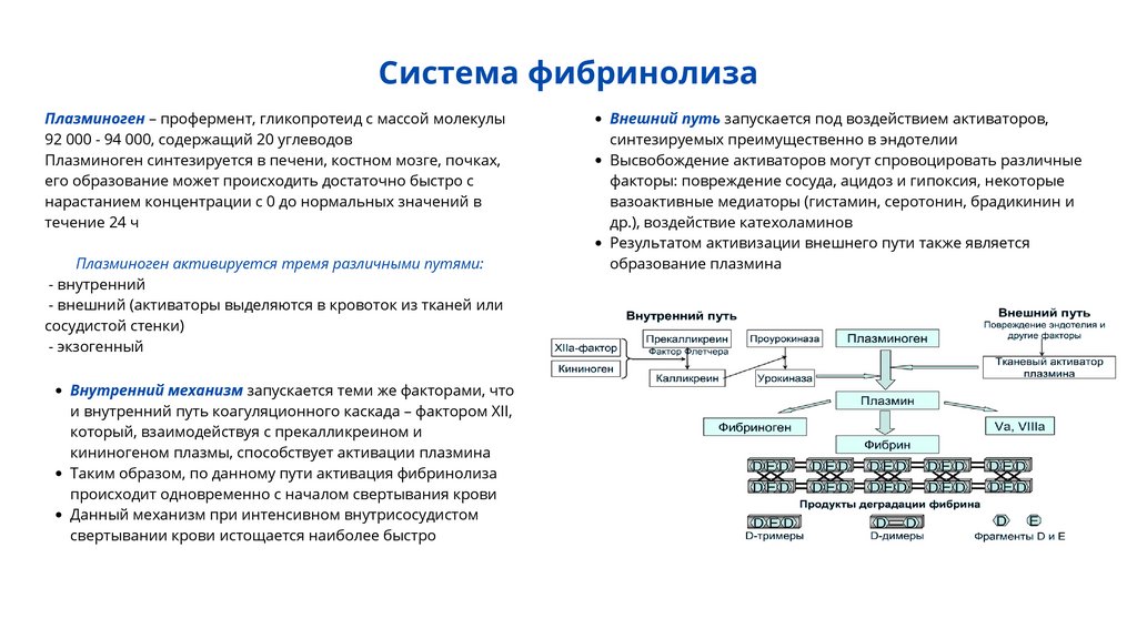 Система фибринолизаПлазминоген – профермент, гликопротеид с массой молекулы