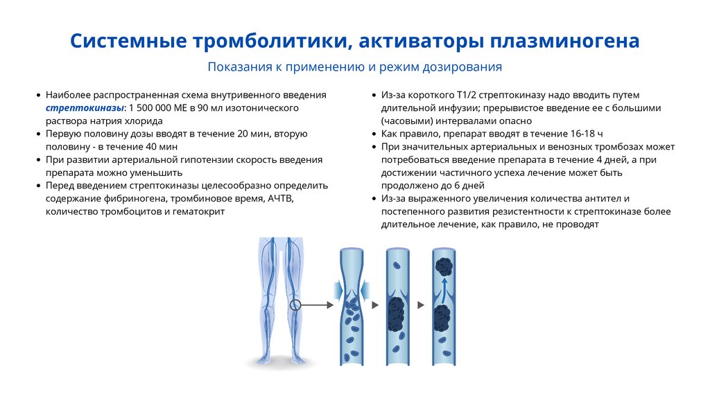 • в отличие от стрептокиназы реже вызывает гипотонию и шок