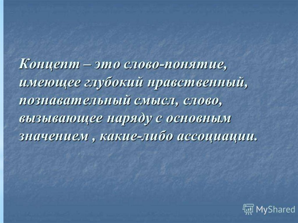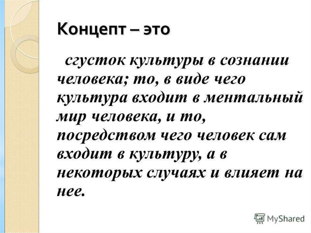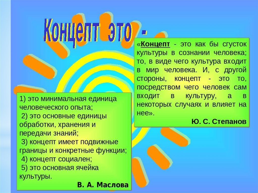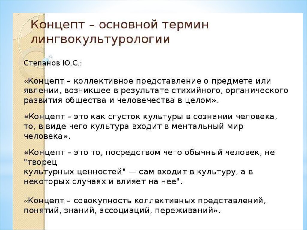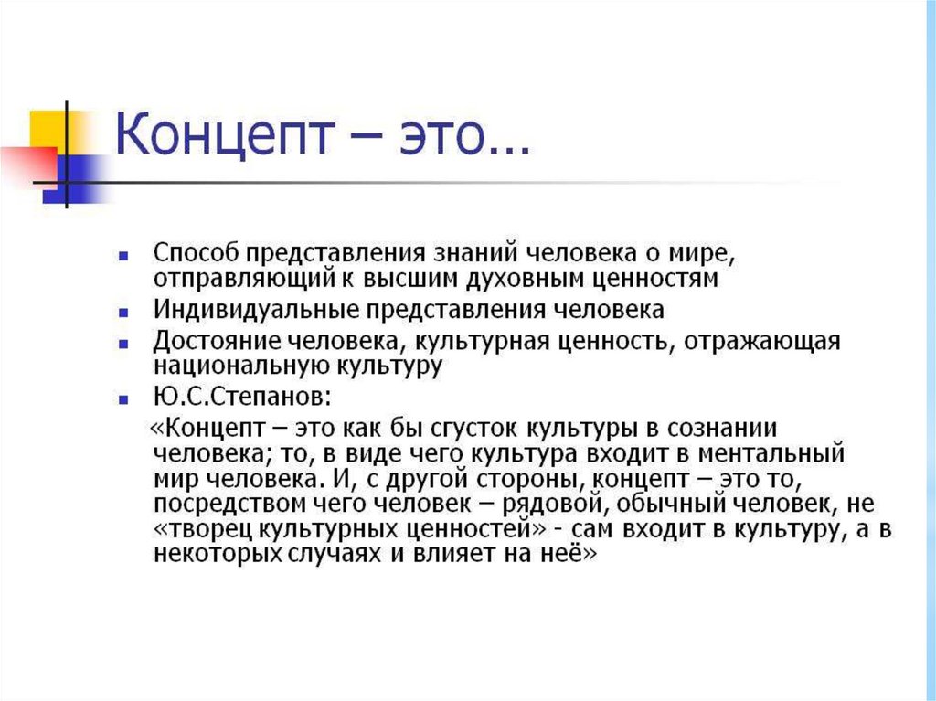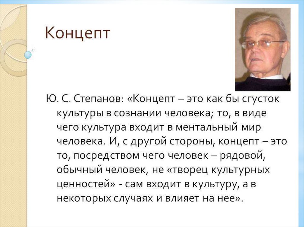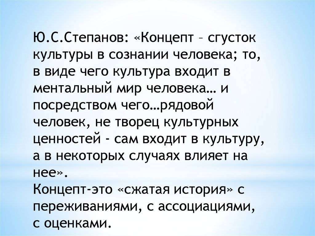 Ю.С.Степанов: «Концепт – сгустоккультуры в сознании человека; то,
