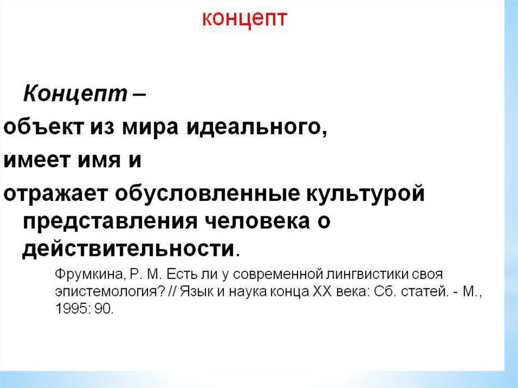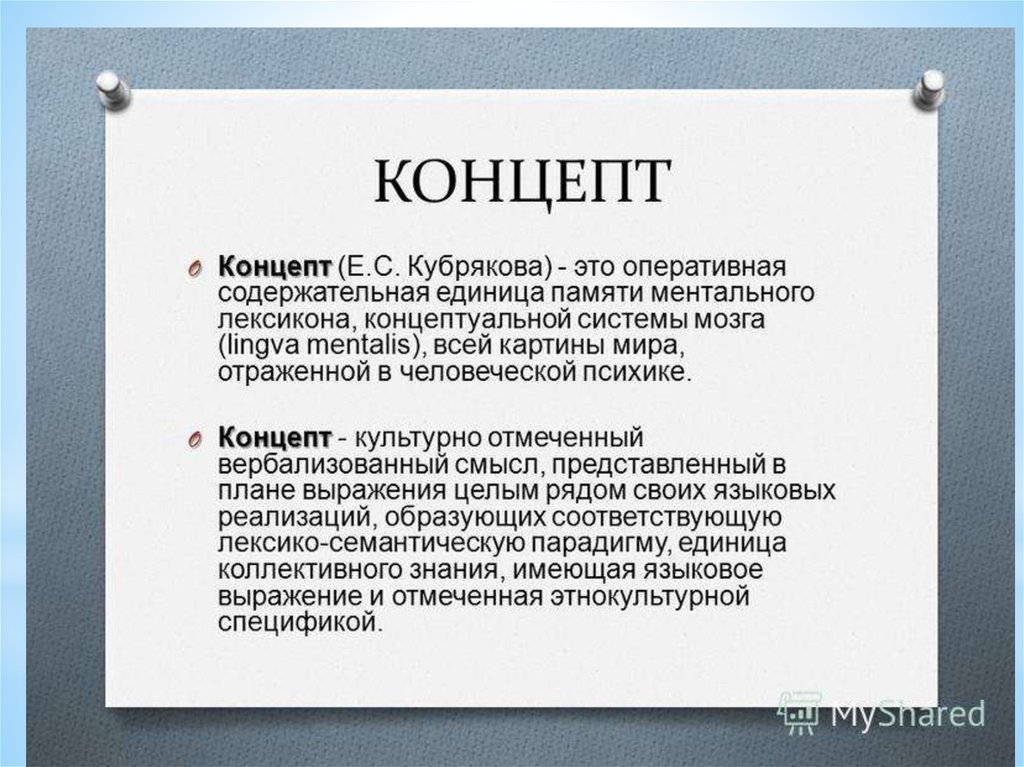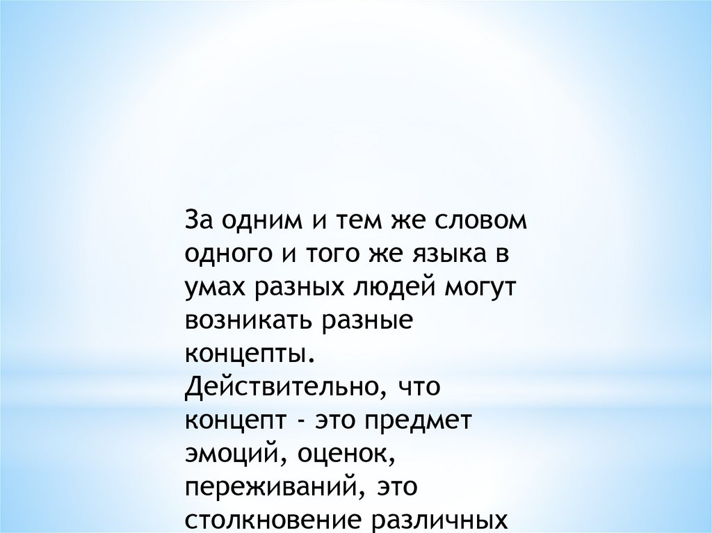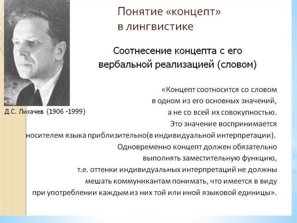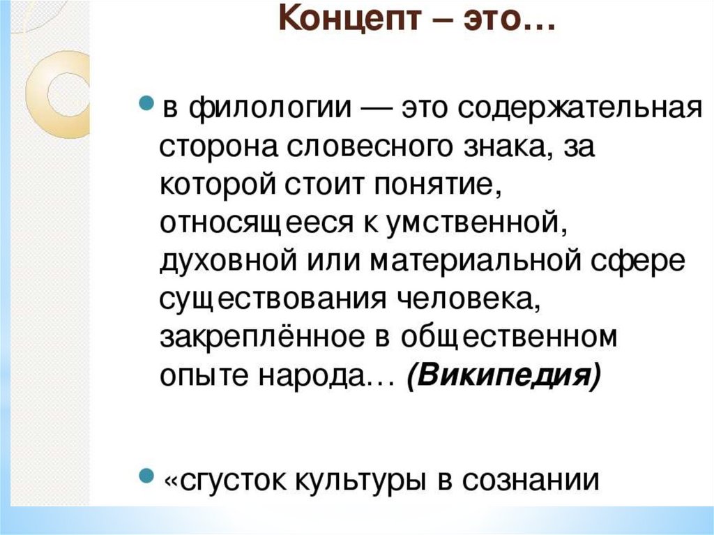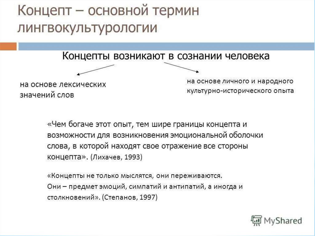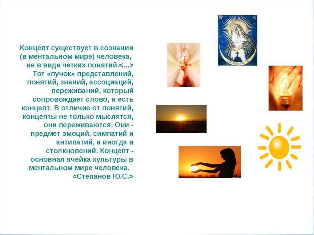 Ю.С.Степанов: «Концепт – сгустоккультуры в сознании человека; то,