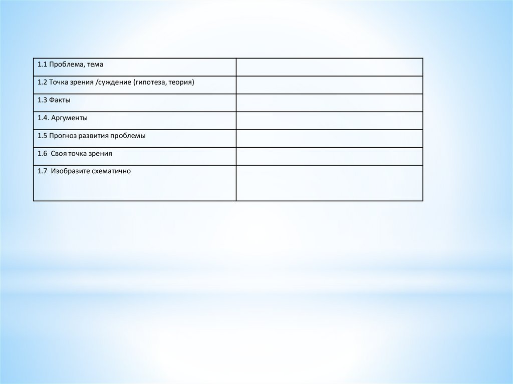 1.1 Проблема, тема1.2 Точка зрения /суждение (гипотеза, теория)