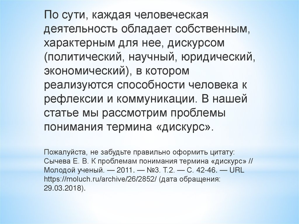 Сычева Е. В. К проблемам понимания термина «дискурс» //