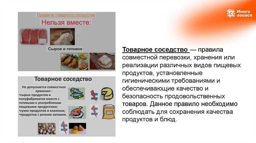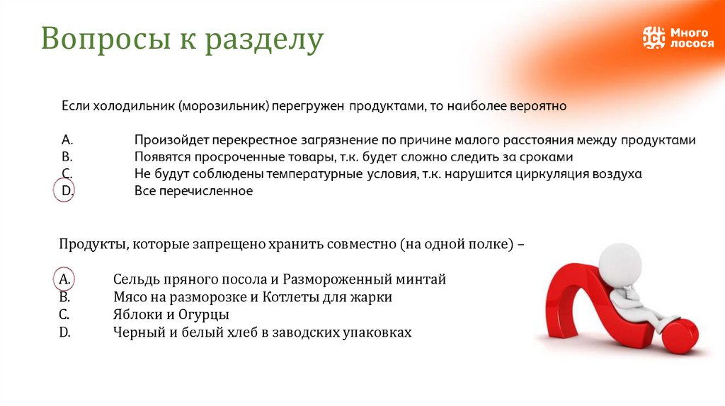 Вопросы к разделуПродукты, которые запрещено хранить совместно (на одной полке) – это