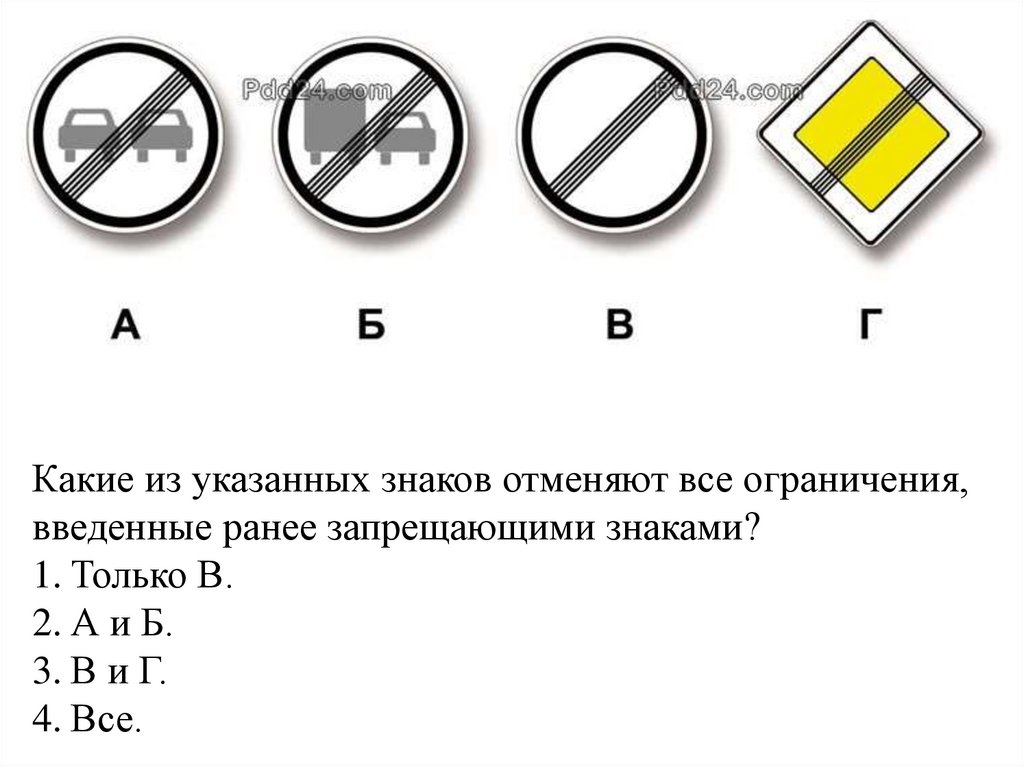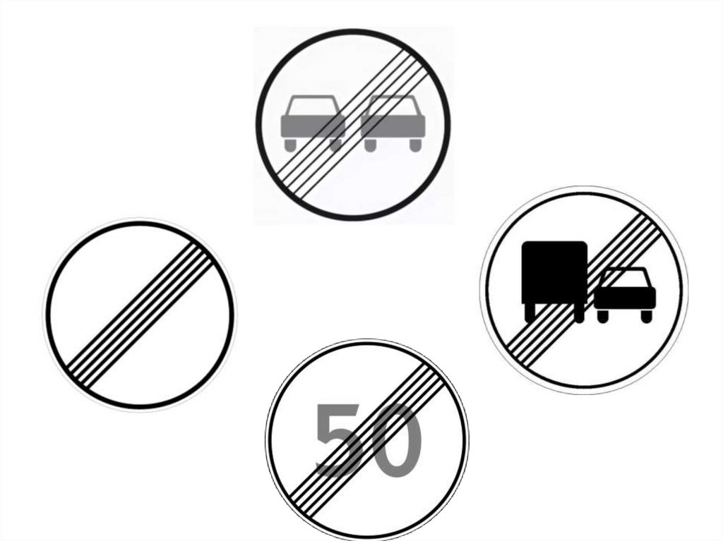 Какие из указанных знаков отменяют все ограничения,введенные ранее запрещающими знаками?