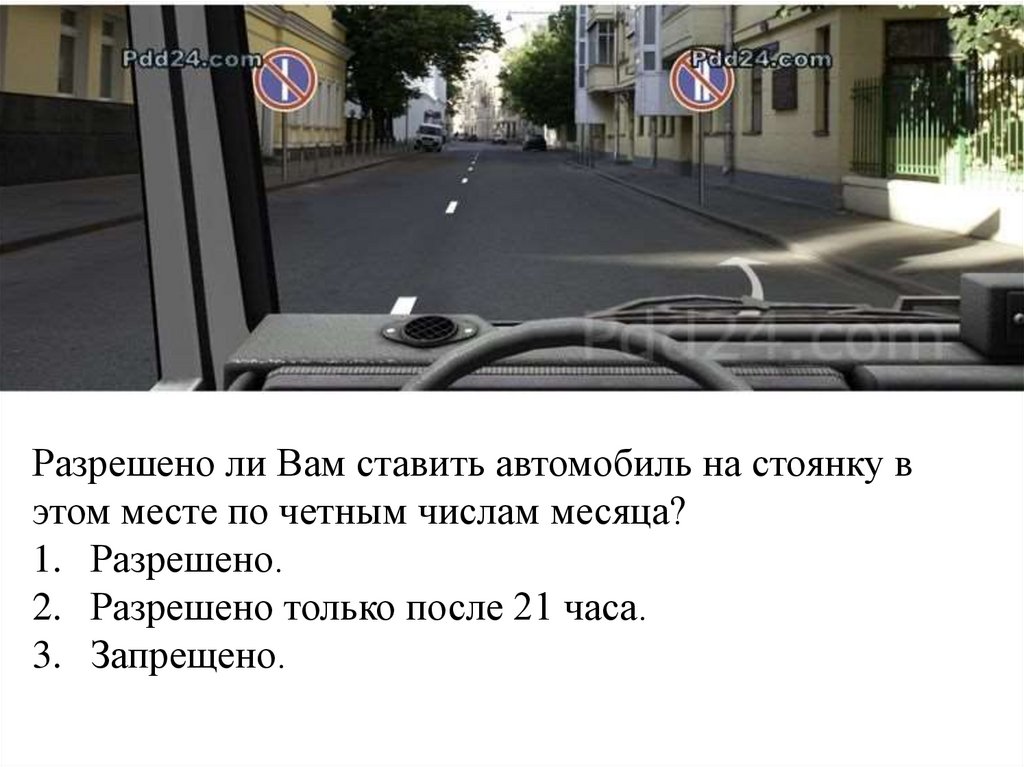 Разрешено ли Вам ставить автомобиль на стоянку вэтом месте по четным числам месяца?
