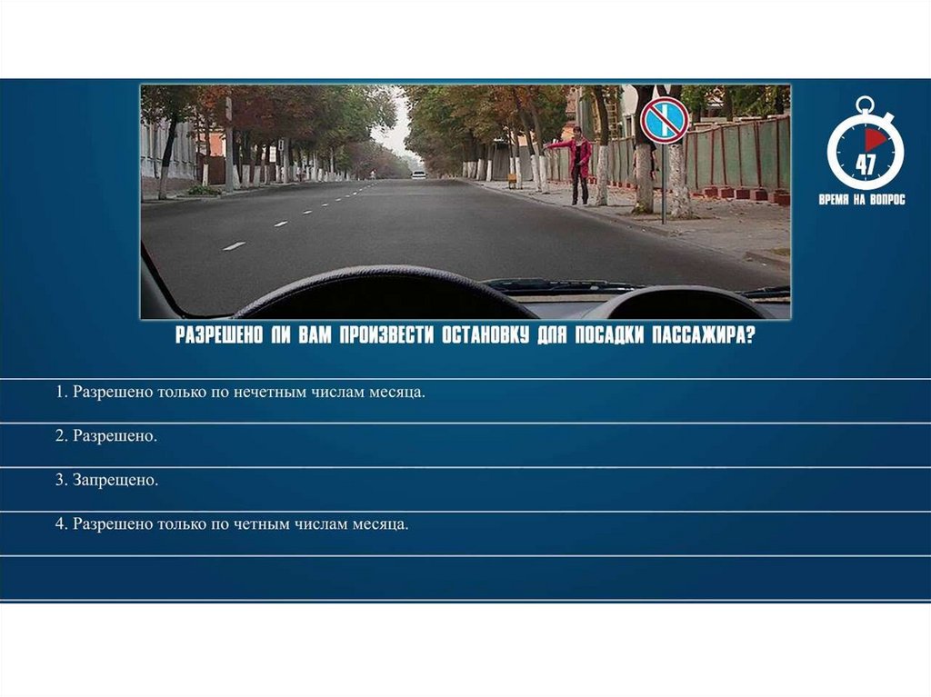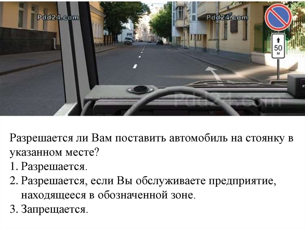 Разрешена ли Вам стоянка в указанном месте?1.Разрешена.