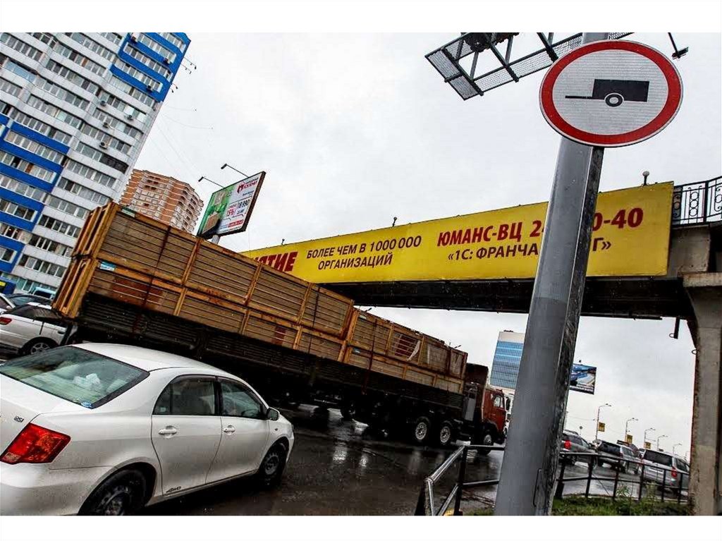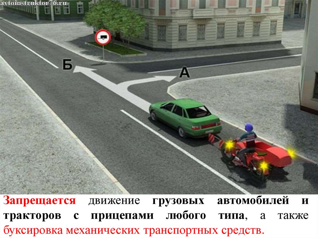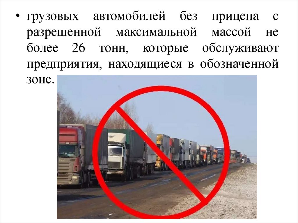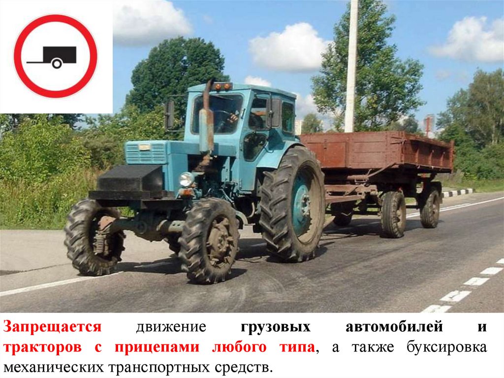 Запрещается движение грузовых автомобилей итракторов с прицепами любого типа, а также