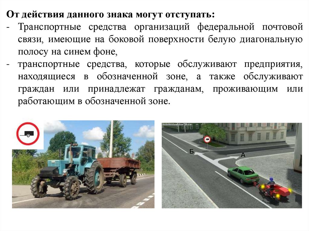 От действия данного знака могут отступать:- Транспортные средства организаций федеральной почтовой