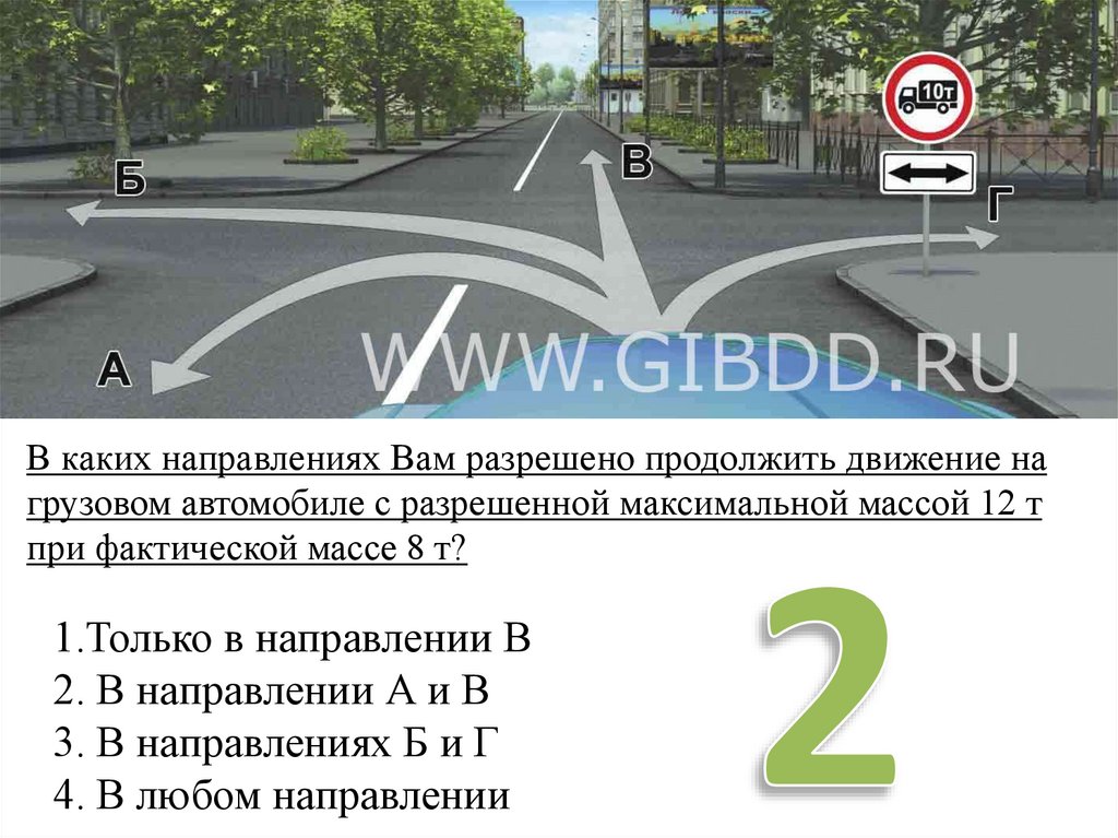 В каких направлениях Вам разрешено продолжить движение нагрузовом автомобиле с разрешенной максимальной массой 12 т