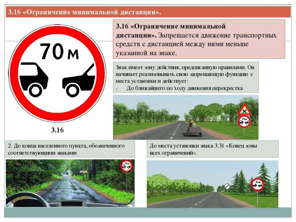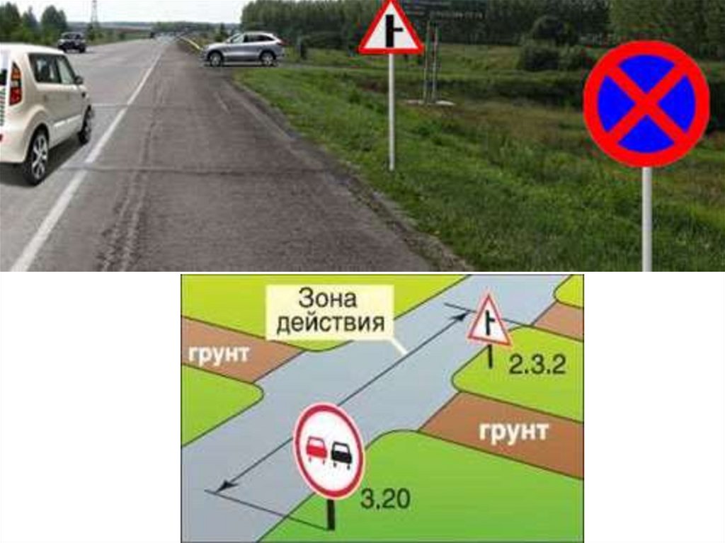 Действие этих знаков не прерывается в местах выезда сприлегающих к дороге территорий и в местах пересечения