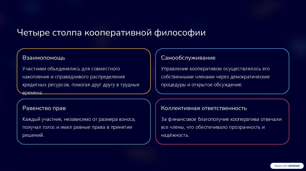 Четыре столпа кооперативной философииВзаимопомощь