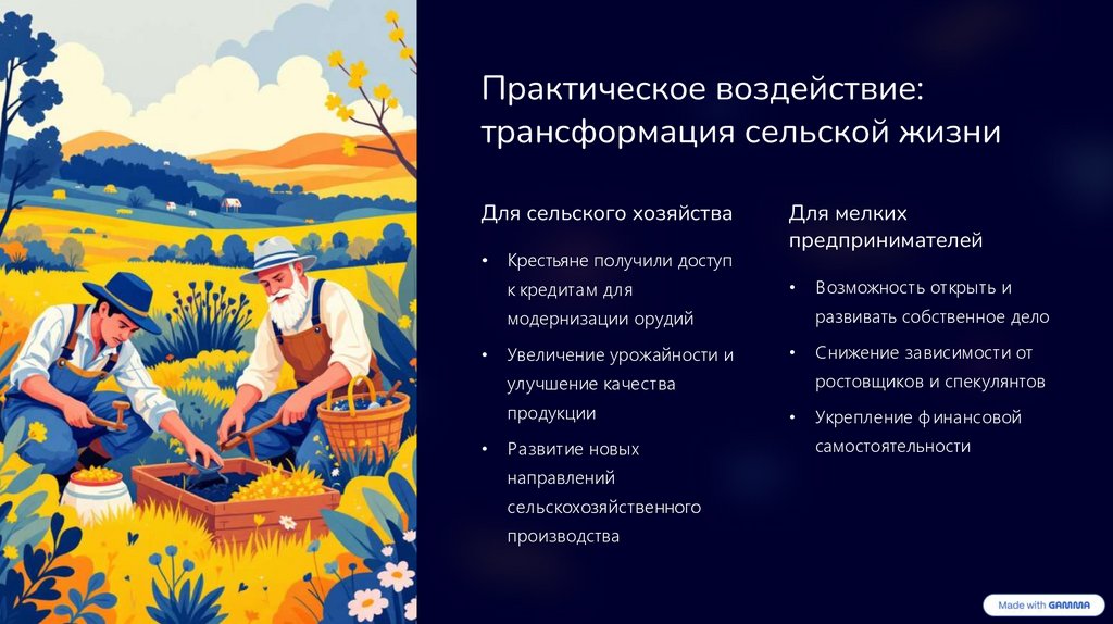 Практическое воздействие:трансформация сельской жизни