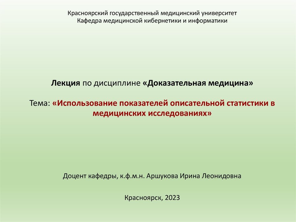 Красноярский государственный медицинский университетКафедра медицинской кибернетики и информатики