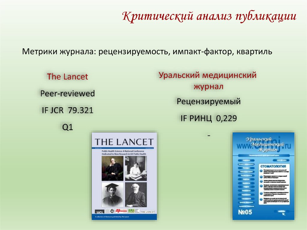 Критический анализ публикацииМетрики журнала: рецензируемость, импакт-фактор, квартиль