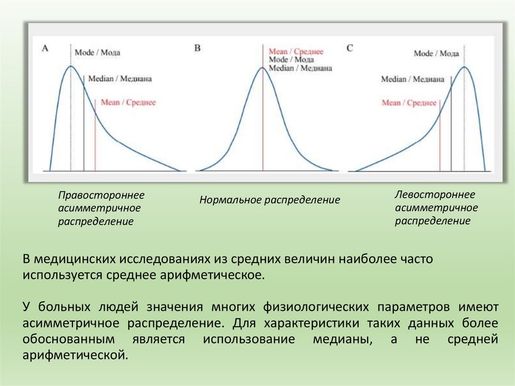 в медицинской практике, основнымихарактеристиками описательной статистики и их выбором в