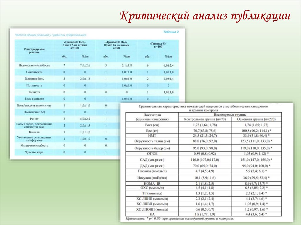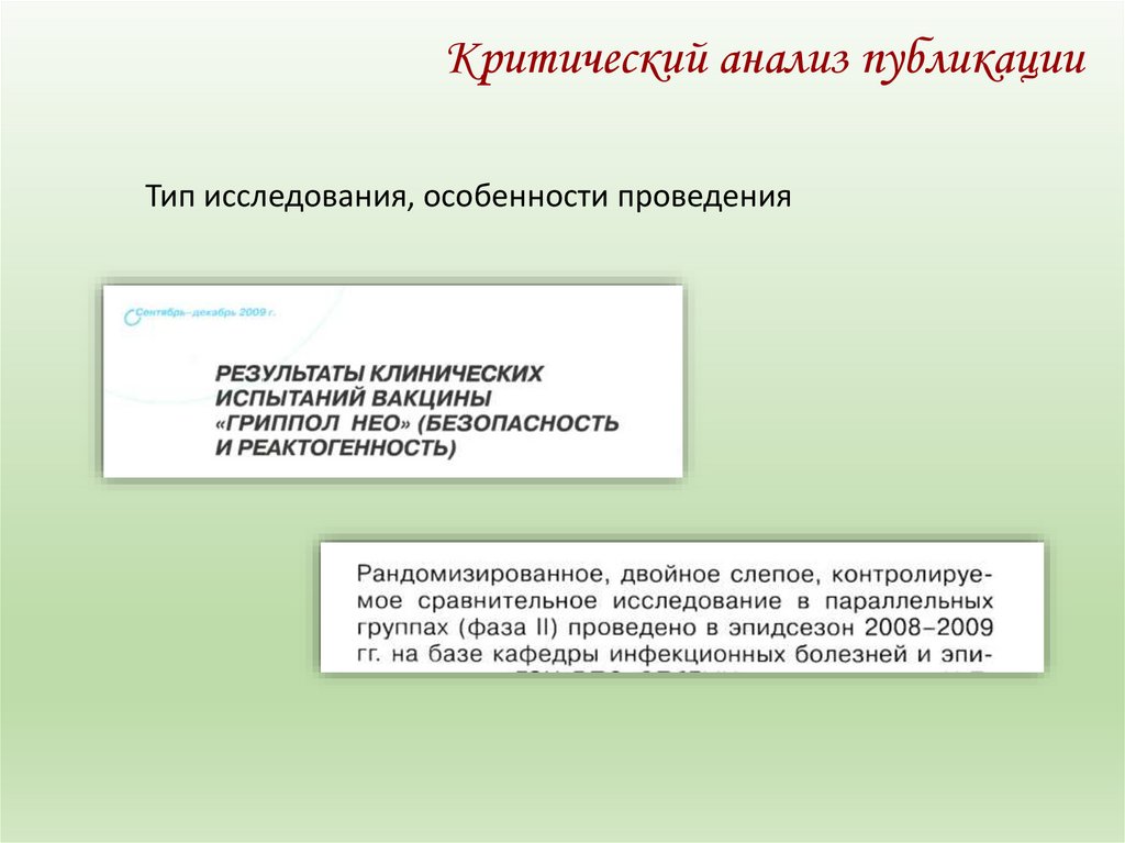 Критический анализ публикацииТип исследования, особенности проведения