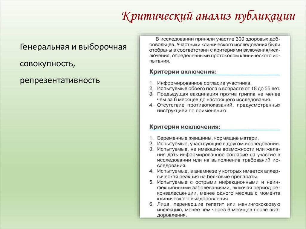 Критический анализ публикацииГенеральная и выборочная