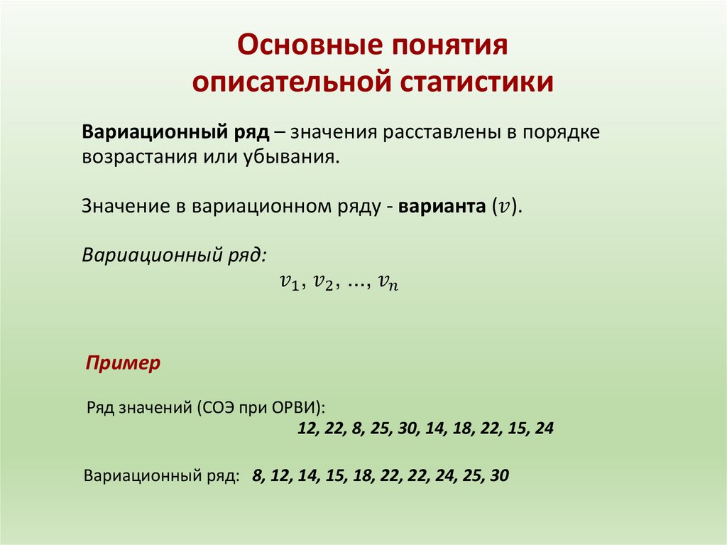 Основные понятияописательной статистики