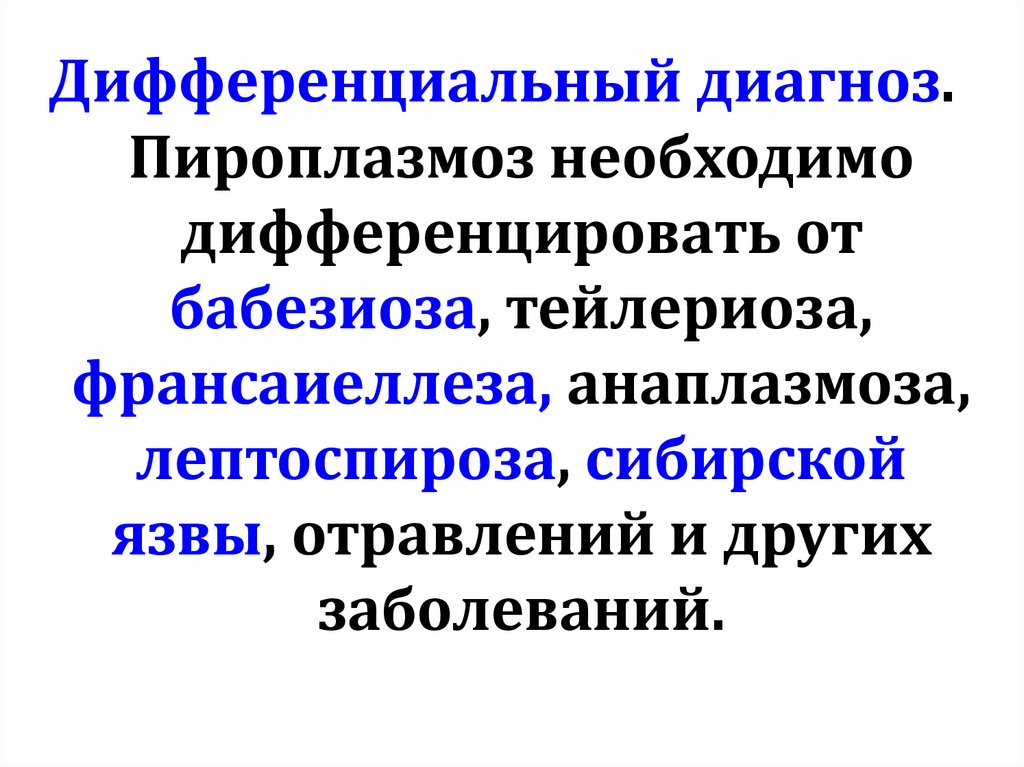 Дифференциальный диагноз.Пироплазмоз необходимо