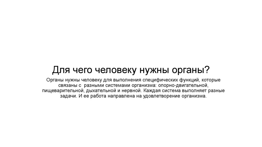 Для чего человеку нужны органы?Органы нужны человеку для выполнения специфических функций, которые