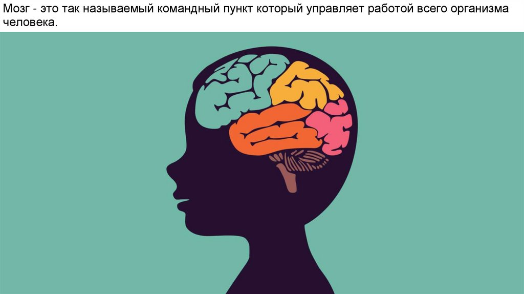 Мозг - это так называемый командный пункт который управляет работой всего организмачеловека.