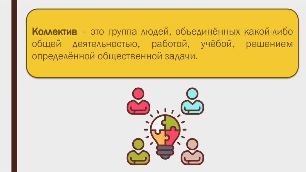 Коллектив – это группа людей, объединённых какой-либообщей деятельностью, работой, учёбой, решением