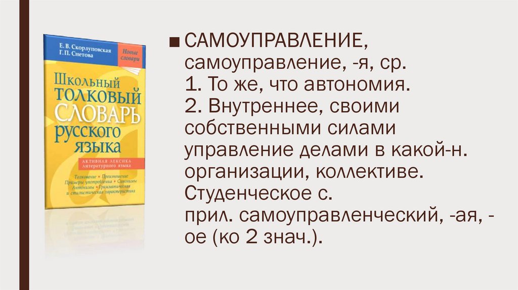 ■ САМОУПРАВЛЕНИЕ,самоуправление, -я, ср.