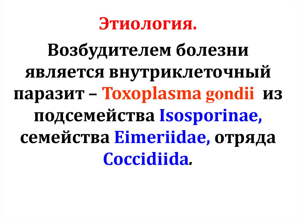 2. Токсоплазмоз – широко распространенная зооантропонозная болезнь многих млекопитающих и человека, проявляющееся преимущественно