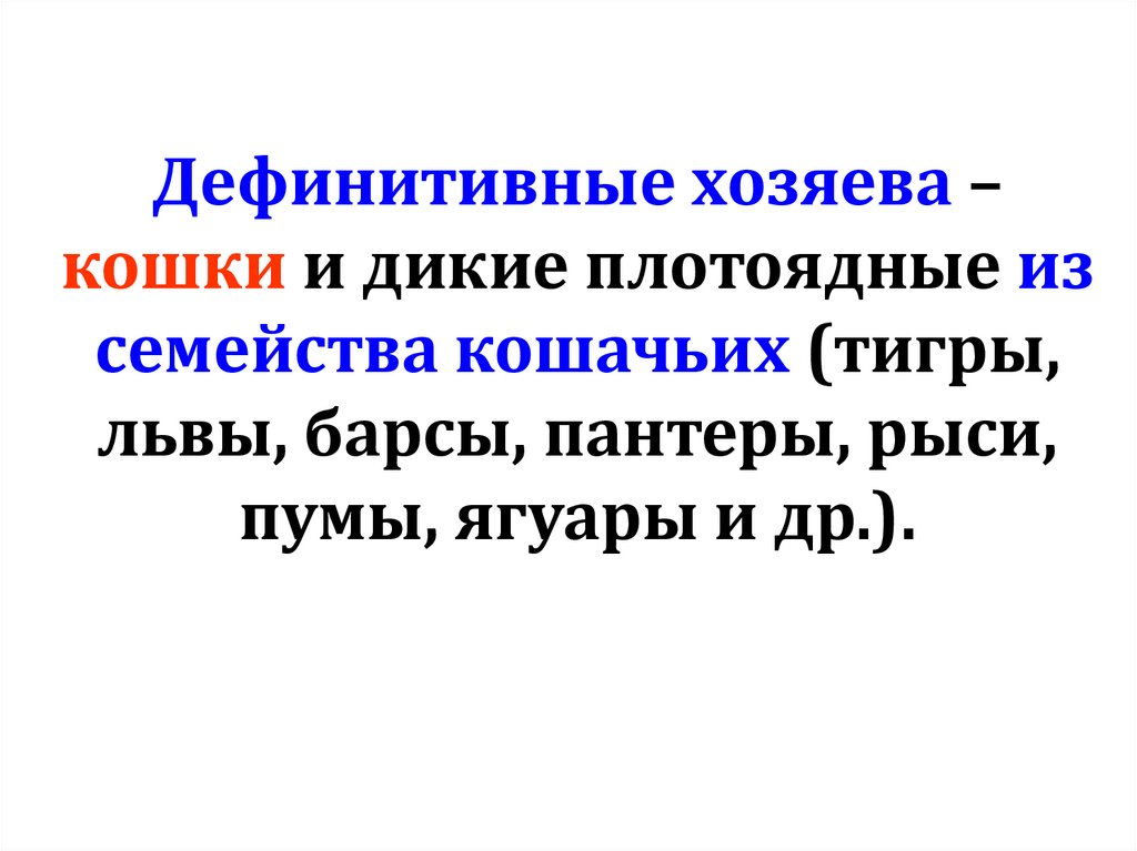 Дефинитивные хозяева –кошки и дикие плотоядные из
