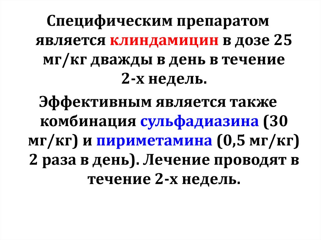 Специфическим препаратомявляется клиндамицин в дозе 25