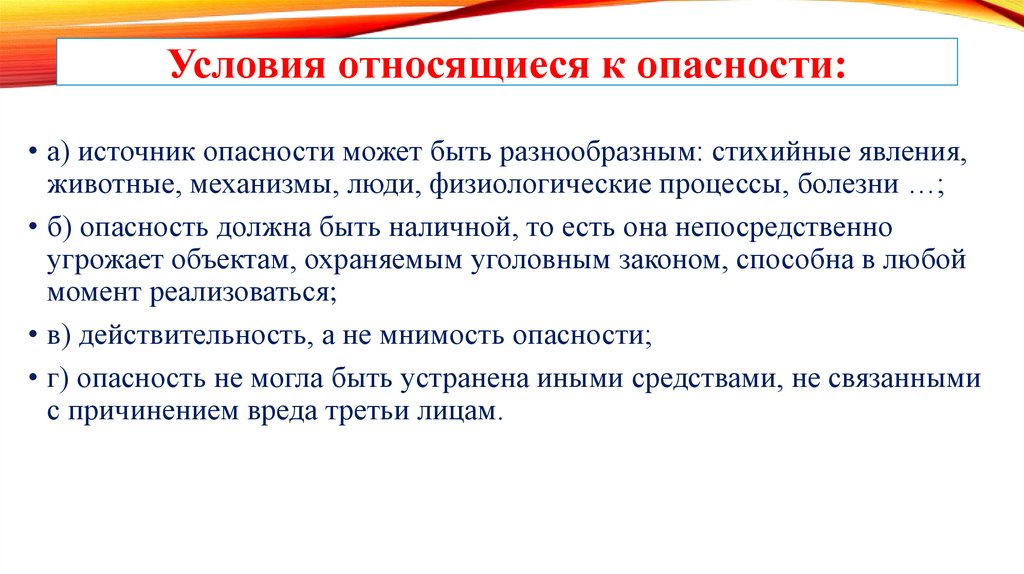 НЕОБХОДИМАЯ ОБОРОНАУсловия правомерности относящиеся к