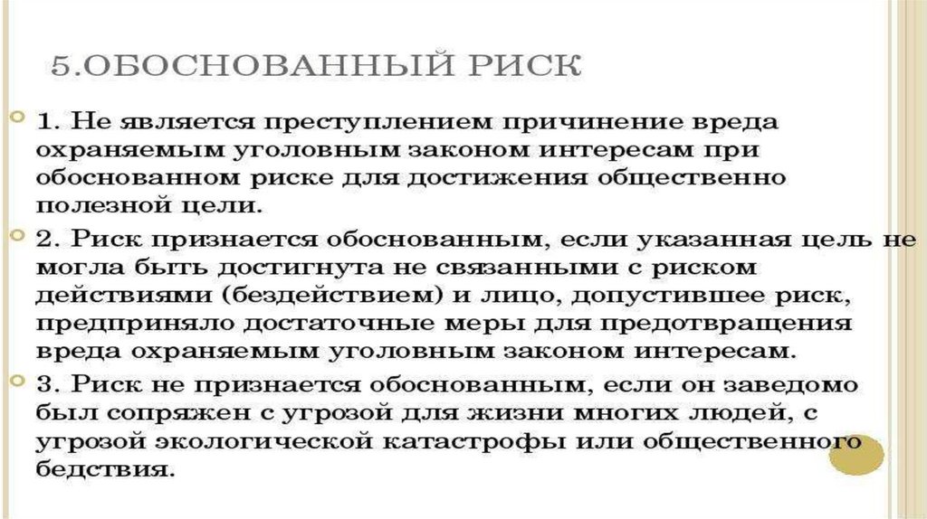 • 2. Обоснованный риск (ст. 41 УК РФ).