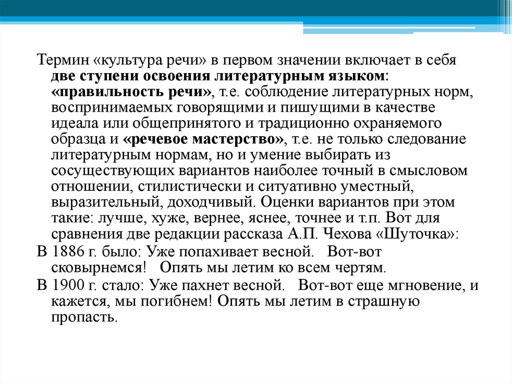 Культура речи – это владение нормами литературного