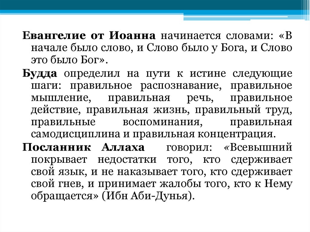 Будда определил на пути к истине следующие