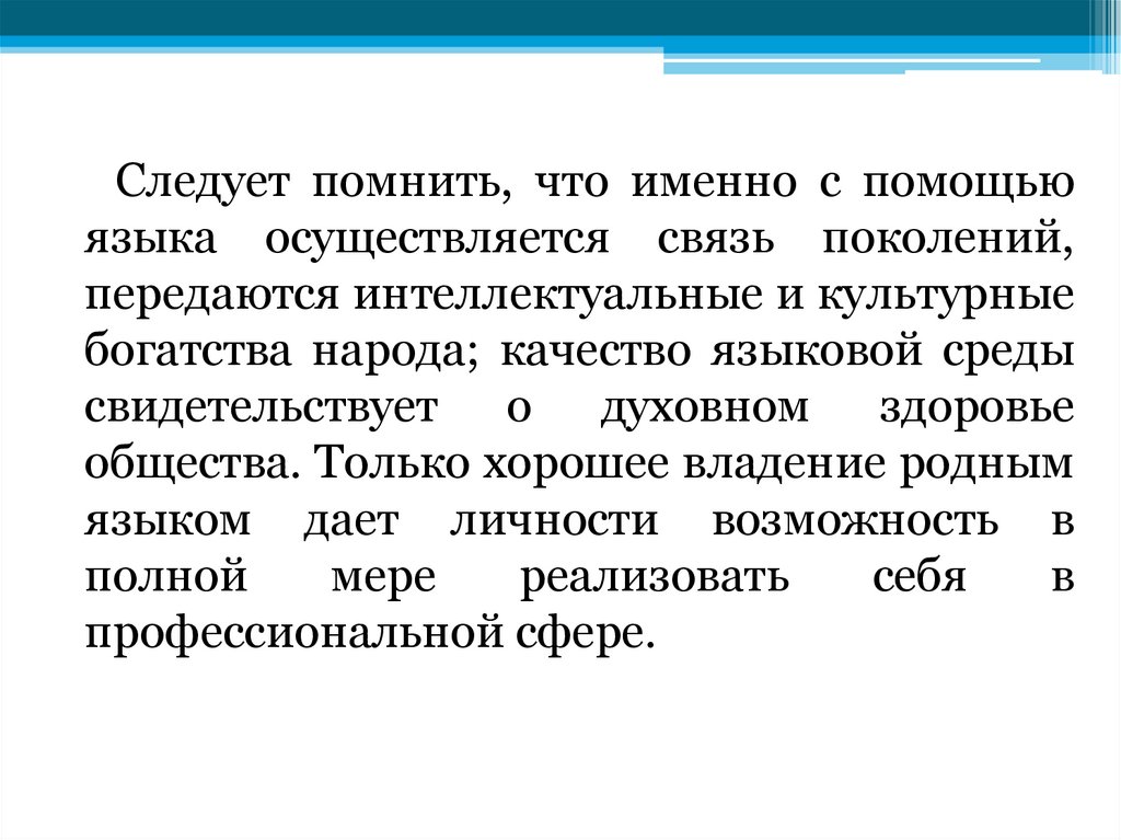 Следует помнить, что именно с помощьюязыка осуществляется связь поколений,