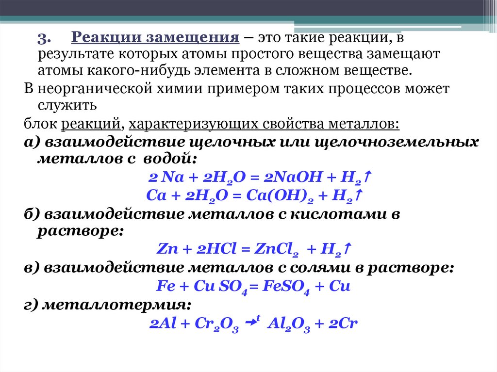 3. Реакции замещения – это такие реакции, врезультате которых атомы простого вещества замещают