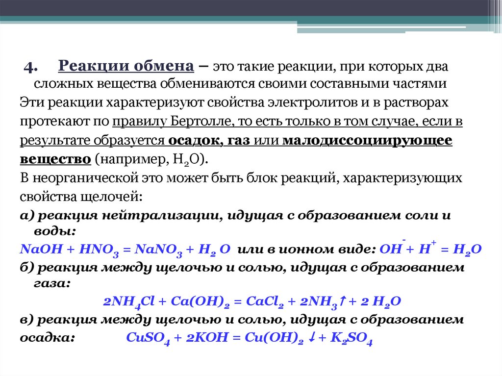 4.1. Необратимые реакции:Необратимые реакции протекают в данных условиях только