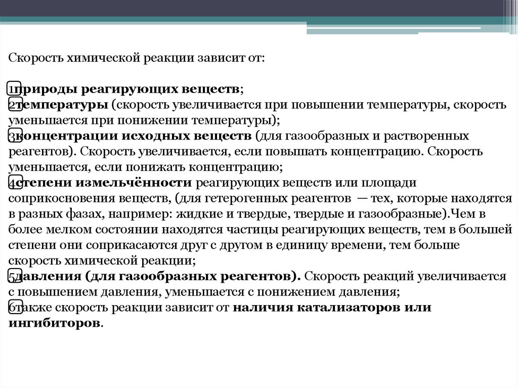 6⃣также скорость реакции зависит от наличия катализаторов или