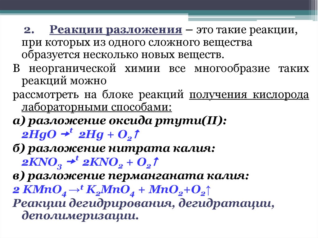 2. Реакции разложения – это такие реакции,при которых из одного сложного вещества
