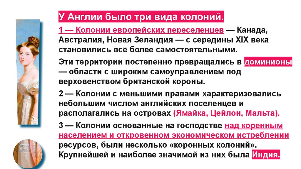 У Англии было три вида колоний.1 — Колонии европейских переселенцев — Канада,
