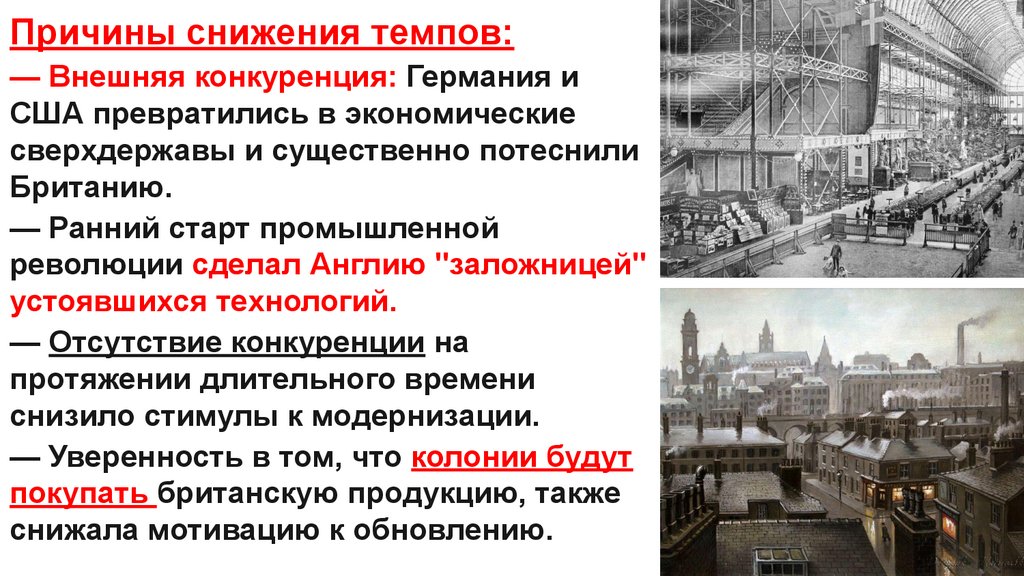 Причины снижения темпов:— Внешняя конкуренция: Германия и