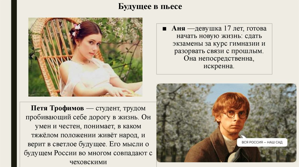 Будущее в пьесе■ Аня —девушка 17 лет, готова