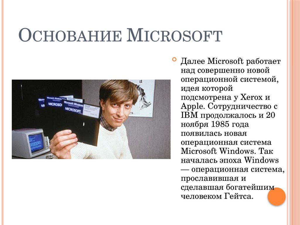 ОСНОВАНИЕ MICROSOFTДалее Microsoft работает
