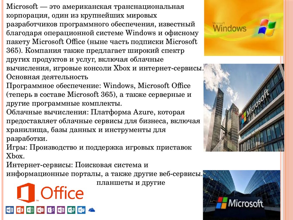 Microsoft — это американская транснациональнаякорпорация, один из крупнейших мировых