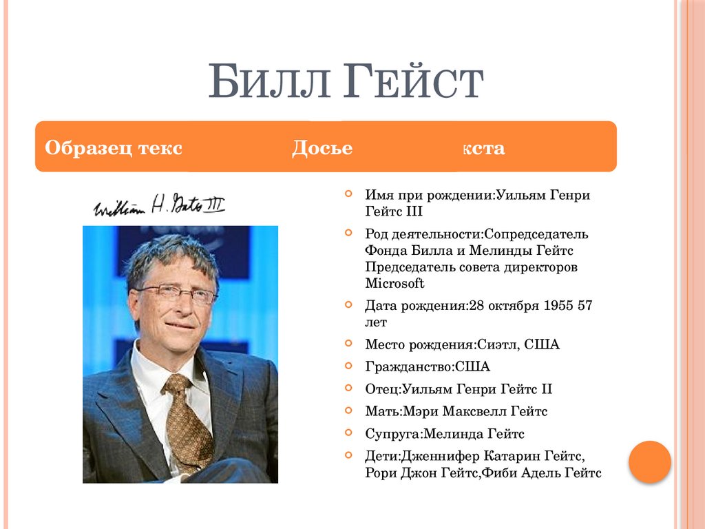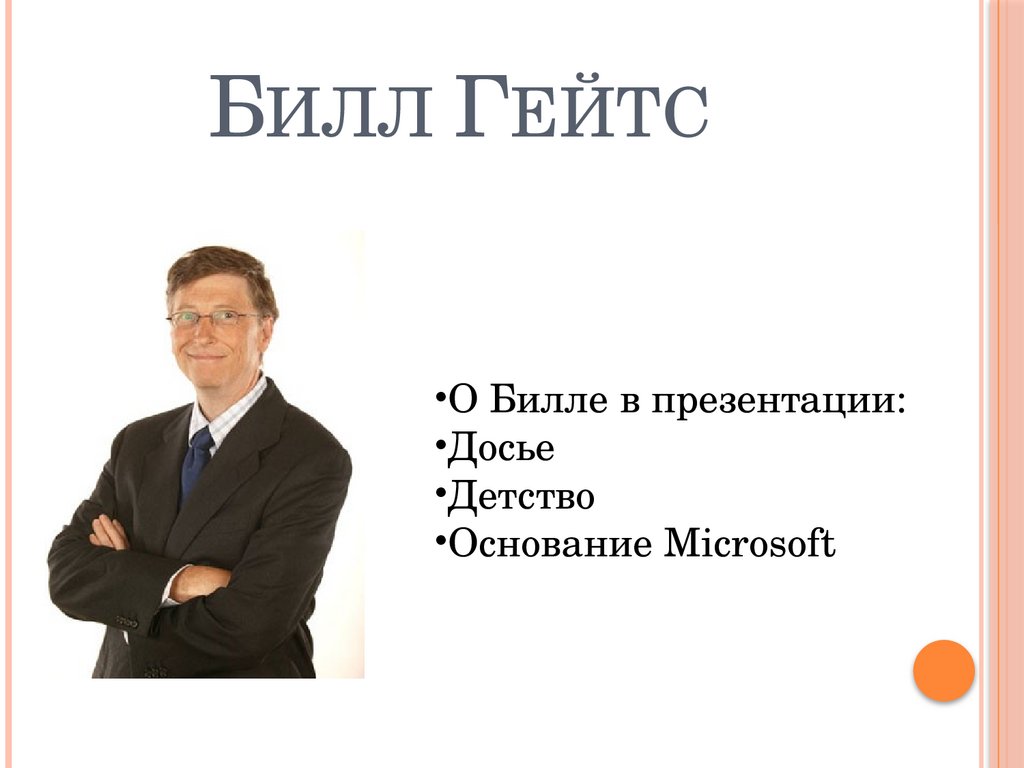 БИЛЛ ГЕЙТС•О Билле в презентации: